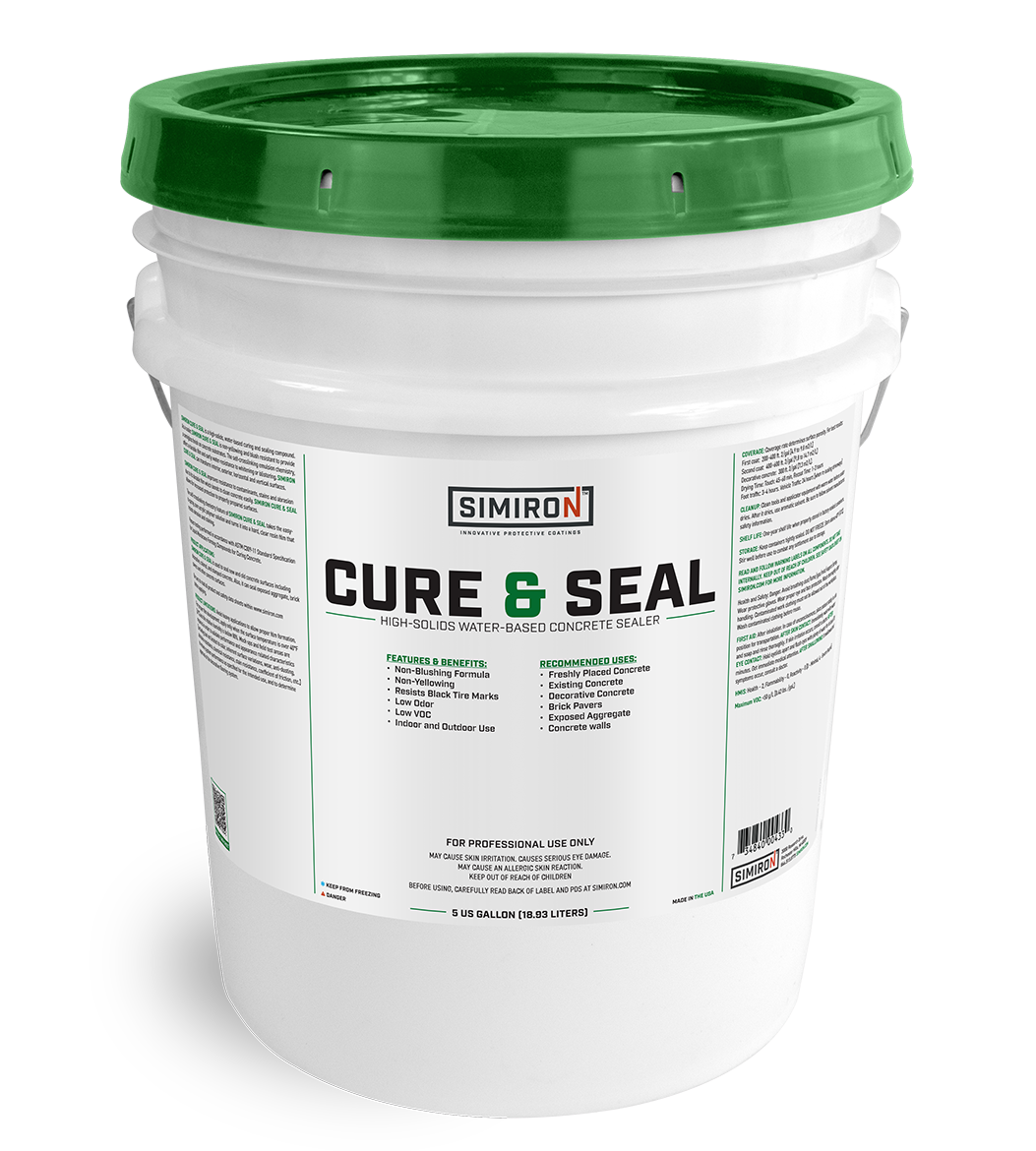 SIMIRON CURE & SEAL improves resistance to contaminants, stains and abrasion due to its durable film which bonds to clean concrete easily. SIMIRON CURE & SEAL allows for increased protection to properly prepared surfaces.
